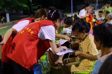 图为志愿服务队员们在山圩镇昆仑村渠楠屯“猴乡戏台”前分发宣传单
