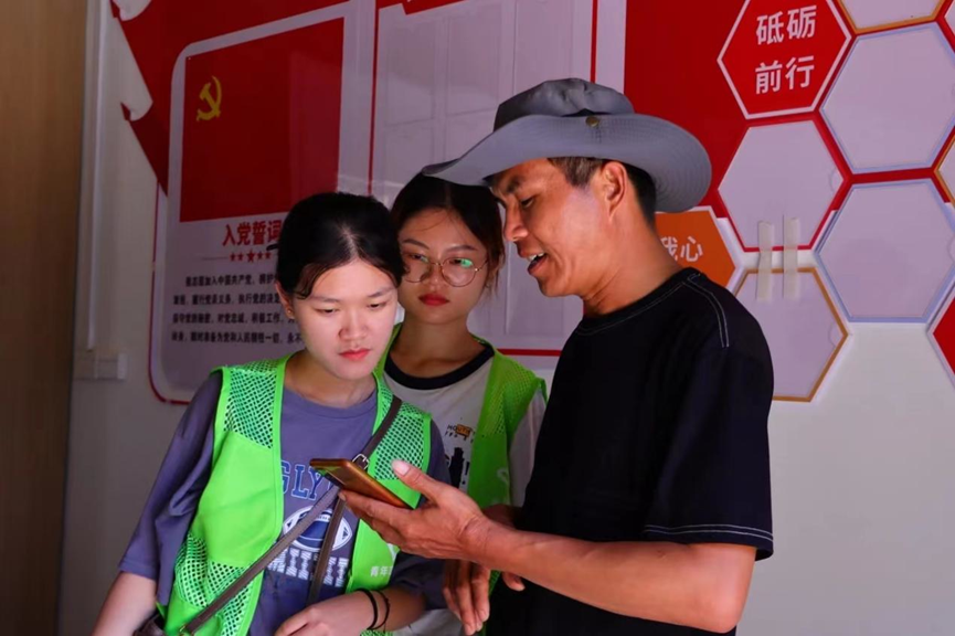 图为协会指导老师、服务队员们与山圩镇昆仑村渠楠屯屯干进行短暂的工作对接