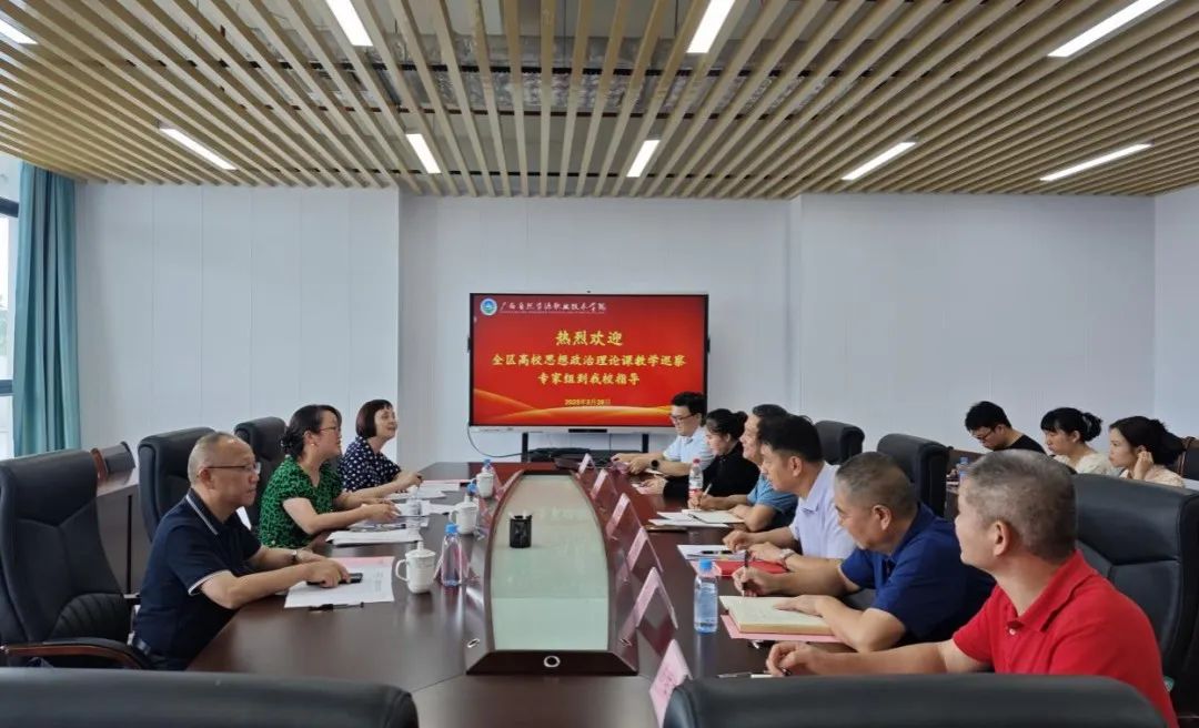 2025年5月28日下午,由桂林学院党委书记唐文红、广西师范大学马克思主义学院教授韦冬雪、梧州学院马克思主义学院教授尹杰钦、桂林师范学院马克思主义学院院长马健芳组成的自治区高校思想政治理论课巡察专家组,到广西自然资源职业技术学院开展“2025年思想政治理论课教学巡察暨听课指导工作”。